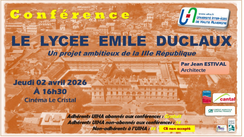 Les conférences ont lieu au cinéma "Le Cristal" à Aurillac, place de la Paix